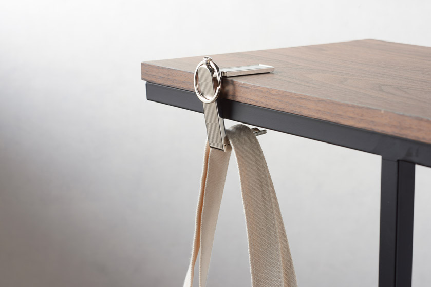 セミナーに参加した時などに、テーブルの隅にさっとひっかけて使えるバッグハンガー。